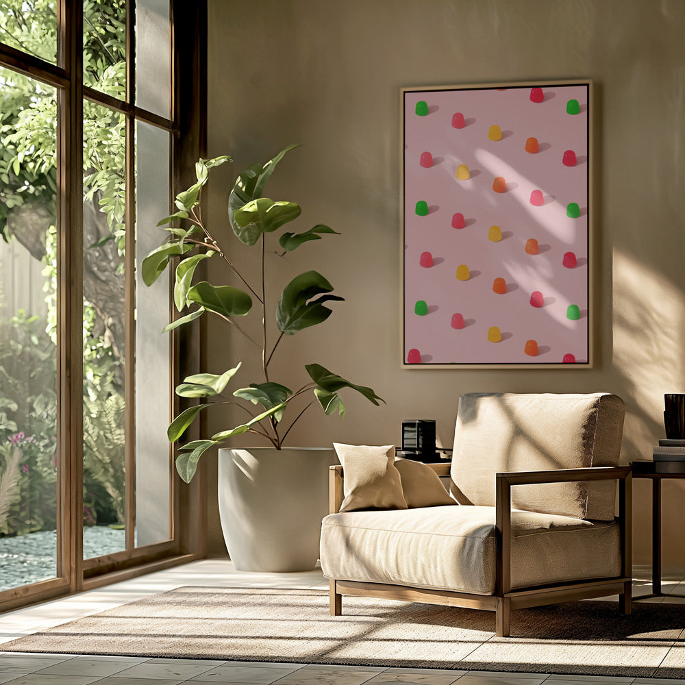 Dots Candy Gum Drops - Repeating Pattern On Pink Background | PosterSKU:2964227-5