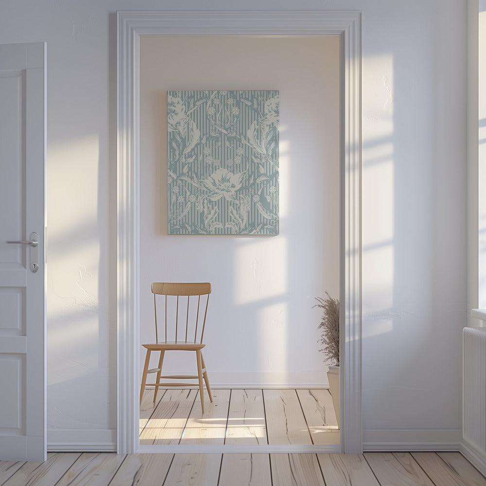 Floral Heritage Morris monochrome stripes chalky blue pattern | CanvasSKU:3090543-4